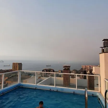 2-slaapkamer Departamento A Pasos Del Centro De Valparaiso omvat een terras met een zwembad en uitzicht op de zee Dit 54 m^2 grote appartement ligt binnen 2 km afstand van het Museum Héroes de Iquique en binnen 2 km van La Sebastiana.